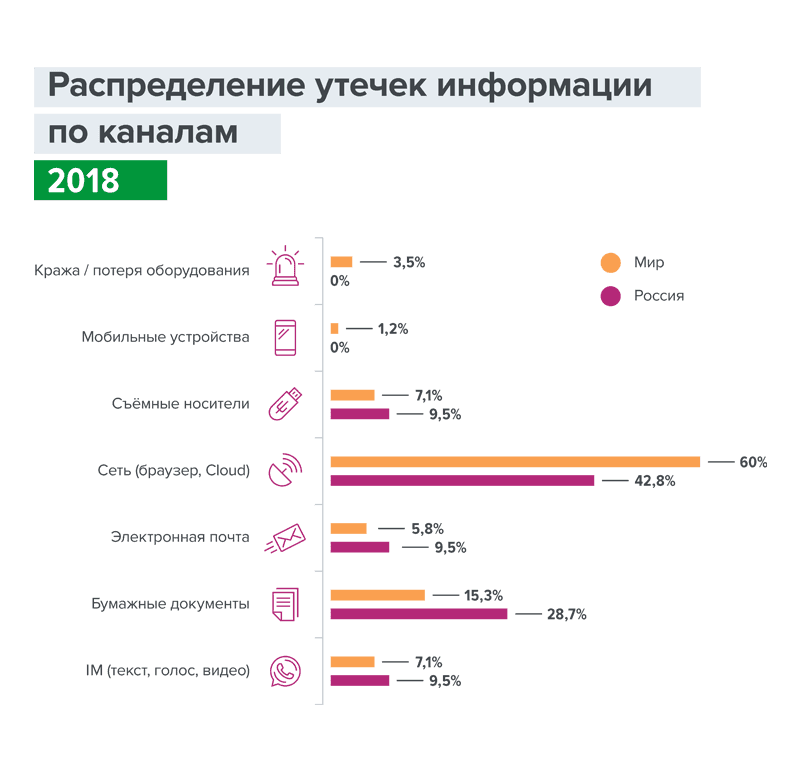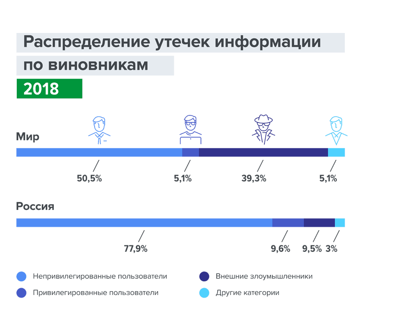 Утечки конфиденциальной информации в результате действий привилегированных пользователей, 2018 год