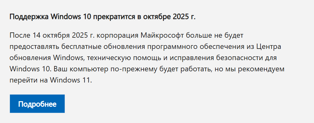 Учитывая все вышеперечисленные безусловно занимательные и веселые события сезона весна-лето 2025, компания Микрософт решила провести окончание поддержки Windows 10 ближе к осени 2025. Безусловно такая новость заставит вздохнуть с облегчением все компании, которые даже после окончания всех сроков не перестали заниматься импортозамещением.