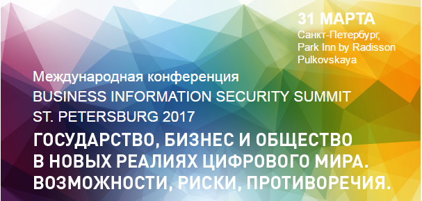 Группа компаний InfoWatch выступит генеральным спонсором международной конференции Business Information Security Summit Saint-Petersburg 2017 (BIS Summit), которая пройдет 31 марта в конгресс-отеле Park Inn by Radisson Pulkovskaya в Санкт-Петербурге.