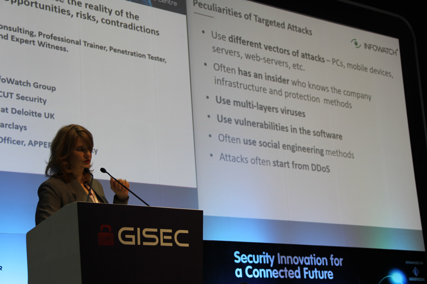 Президент группы компаний (ГК) InfoWatch Наталья Касперская приняла участие в пленарной программе глобального форума в области информационной безопасности (ИБ) Gulf Information Security Expo & Conference (GISEC), который проходит с 21 по 23 мая в Дубае, Объединённые Арабские Эмираты. В рамках правительственной панельной дискуссии, посвященной обеспечению безопасности «умных городов», глава InfoWatch рассказала о существующих угрозах в связи с глобальным развитием «Интернета вещей» и предложила выработать единые подходы к обеспечению информационной безопасности умных устройств на международном уровне.