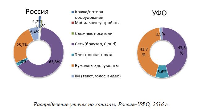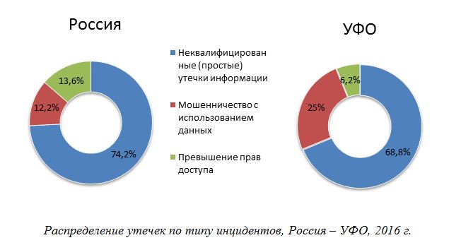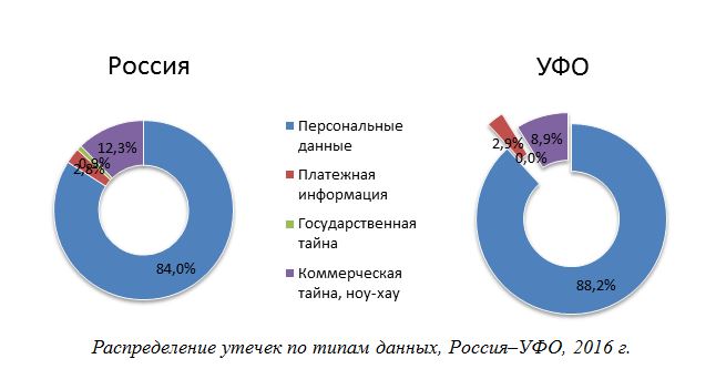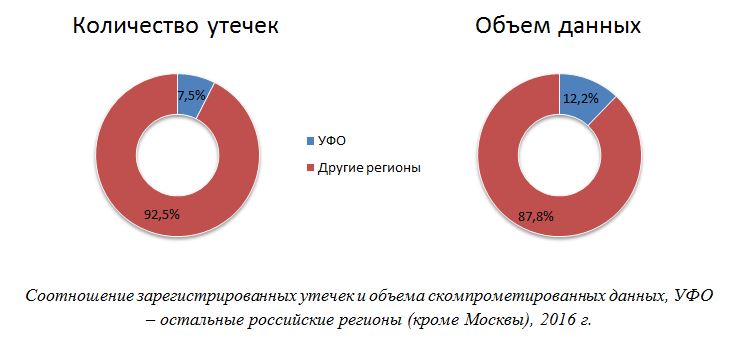В 2016 году в УФО было зафиксировано на 33% больше инцидентов в области информационной безопасности, чем годом ранее. В распределении по числу инцидентов по регионам России, исключая Москву, доля УФО составила 7,5%, при этом на Урал приходится 12% объема утекших данных. С учетом того, что в УФО проживает 8,4% российского населения, средняя «мощность» утечки здесь существенно выше, чем в среднем по России, и составляет более 2200 записей данных на утечку против 1400 в среднем по России за исключением утечек из крупных федеральных компаний. Ситуация в УФО осложняется высокой долей квалифицированных утечек.