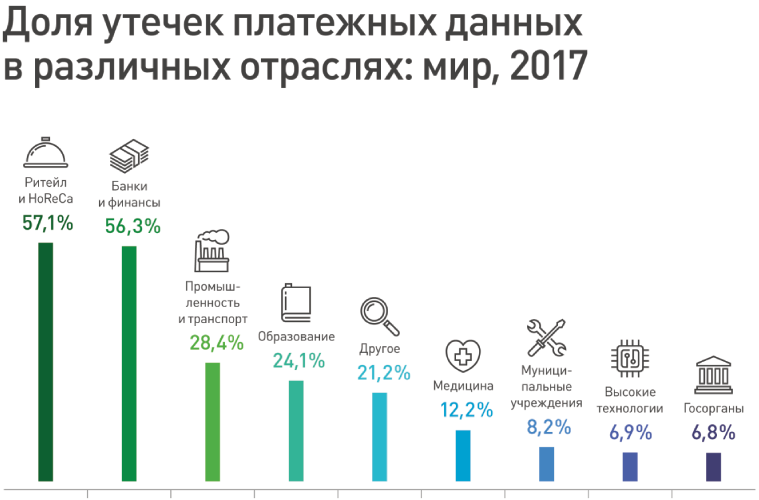 Организации сфер розничной торговли и услуг гостеприимства наиболее подвержены утечкам платежных данных в мире