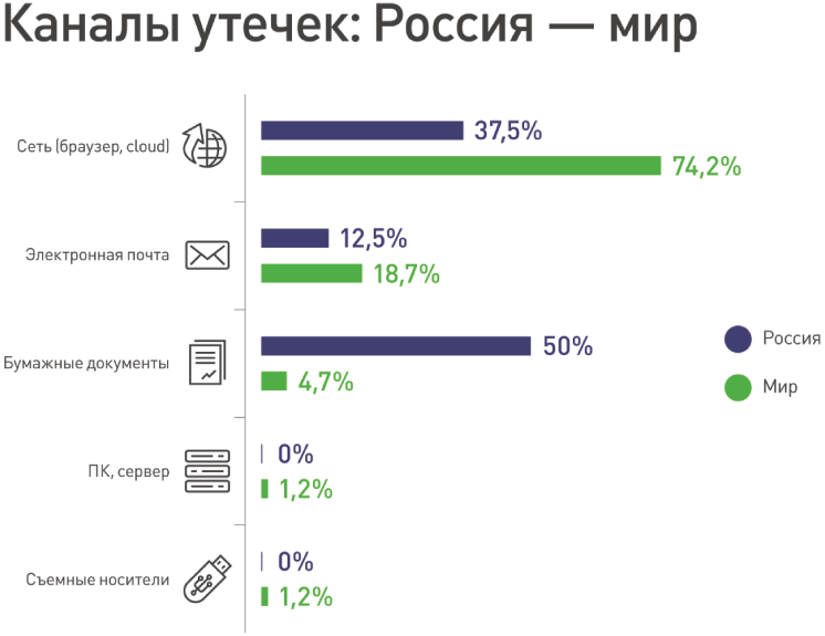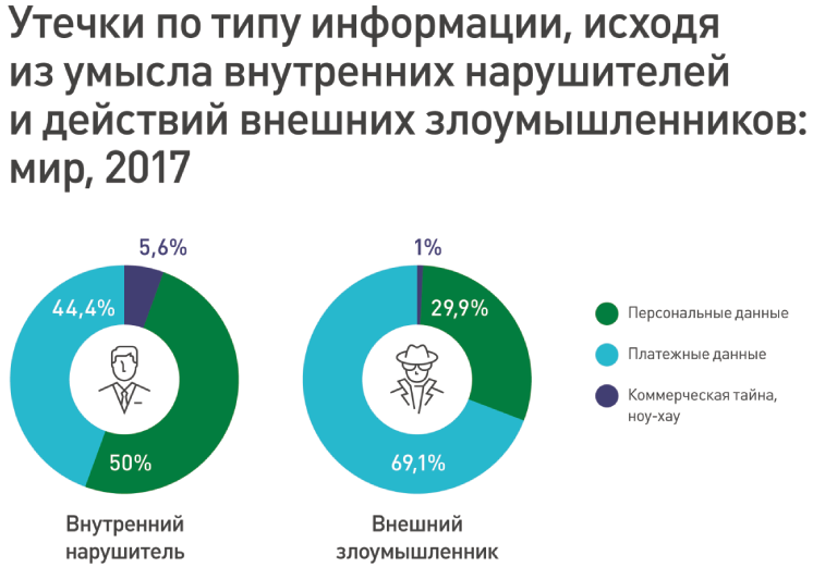 «Россия сегодня находится в переходном периоде, мы только идем по пути цифровизации, в отличие, например, от западных стран, где эти процессы начались намного раньше, выше уровень кибергигиены населения и выше уровень защиты в организациях, — рассказал аналитик ГК InfoWatch Сергей Хайрук. — Организации в основном оперируют большими объемами структурированных данных, стремятся укрупнять хранилища информации. Результаты нашего исследования показывают, что наибольший риск компрометации информации сегодня связан с умышленными утечками, воздействием изнутри. Непреднамеренные утечки чаще всего автоматически фиксируются системой, но в случае с умышленными действиями инсайдера, который располагает достаточным технологическим и временным ресурсом, предотвратить утечку данных сложнее».