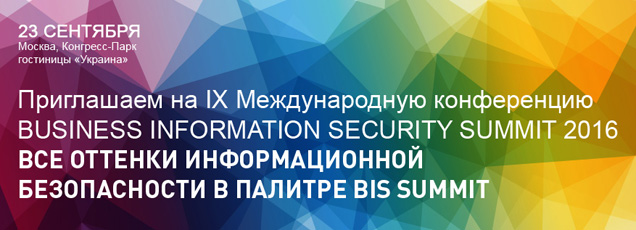 Компания InfoWatch, лидер рынка систем защиты корпоративной информации, выступит генеральным спонсором IX международной конференции Business Information Security Summit 2016, которая пройдет 23 сентября в Конгресс-Парке гостиницы «Украина».