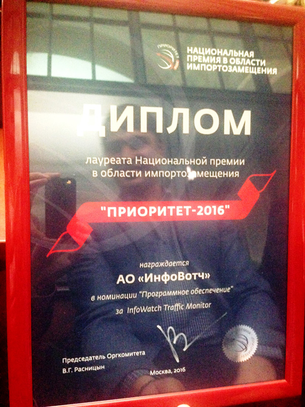 InfoWatch Traffic Monitor получил национальную премию в области импортозамещения «Приоритет-2016»