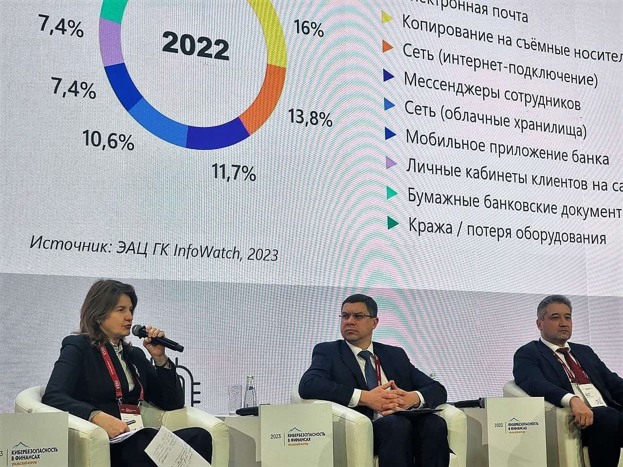 В рамках сессии состоялось обсуждение итогов опроса об утечках информации ограниченного доступа в организациях кредитно-финансовой сферы России в 2022 году, проведенного специалистами экспертно-аналитического центра ГК InfoWatch.