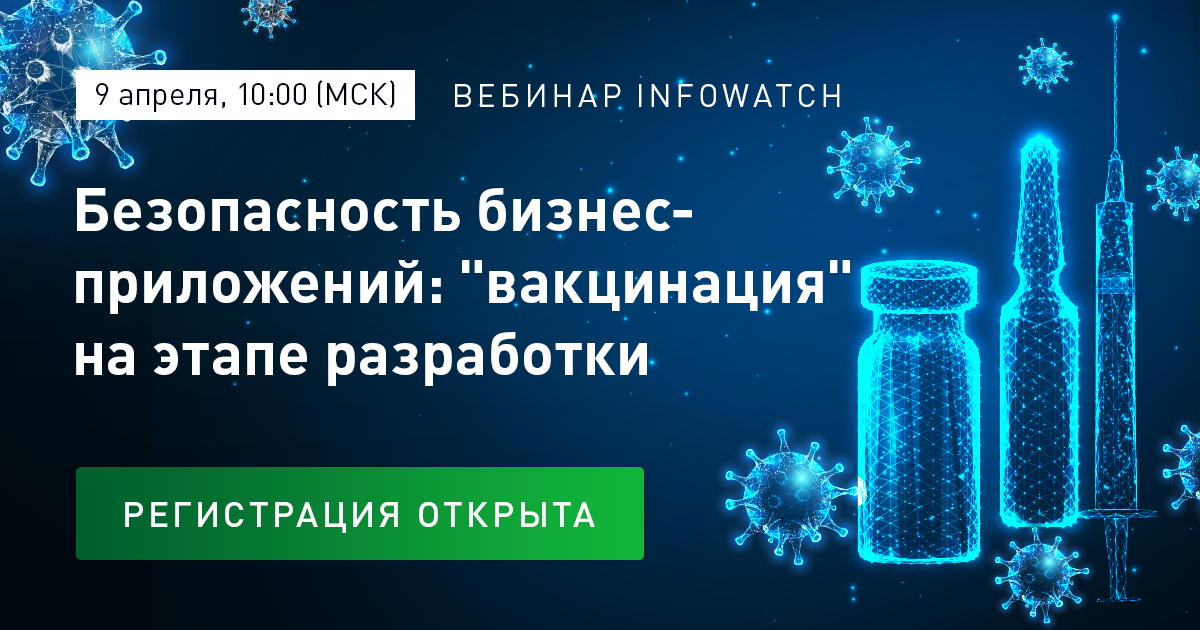 На вебинаре мы расскажем о том, как минимизировать риски использования современных приложений за счет контроля над кодом на всех этапах жизненного цикла ПО, и продемонстрируем функциональные возможности InfoWatch Appercut – системы автоматизированного контроля качества исходного кода бизнес-приложений.